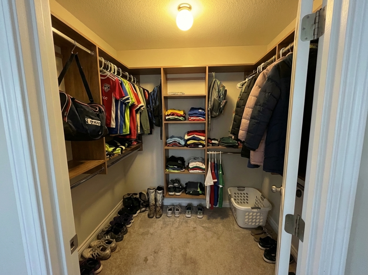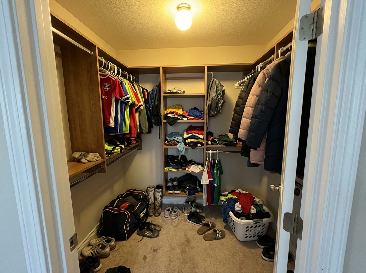 BeforeAfterChaotic wardrobe closet cleared and reorganised