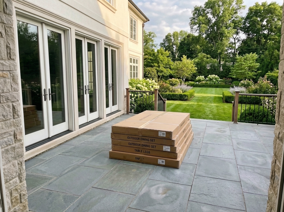 BeforeAfterOutdoor furniture assembled and patio set up